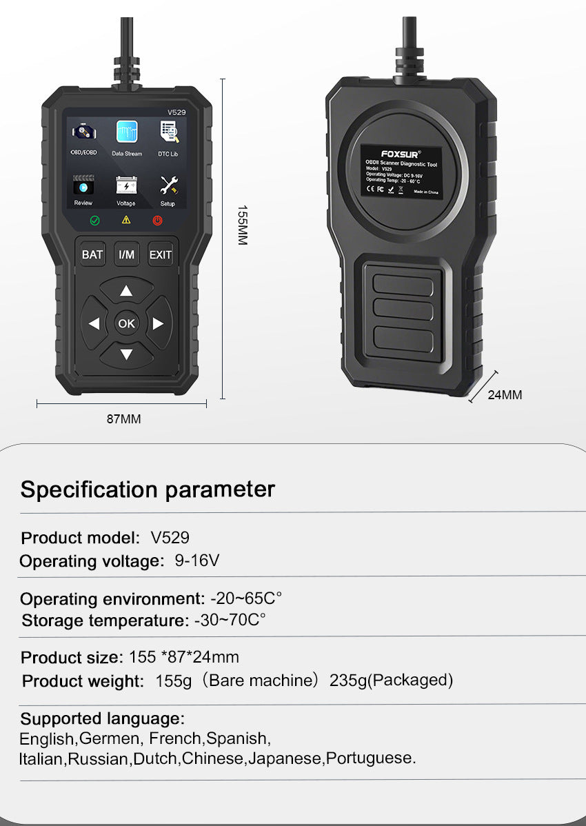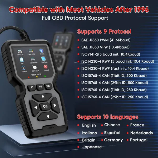 Take full control of your vehicle’s health with this professional-grade OBD2 diagnostic scanner, designed for OBDII/EOBD CAN vehicles manufactured after 1996. No battery required—just plug in and diagnose like a pro!